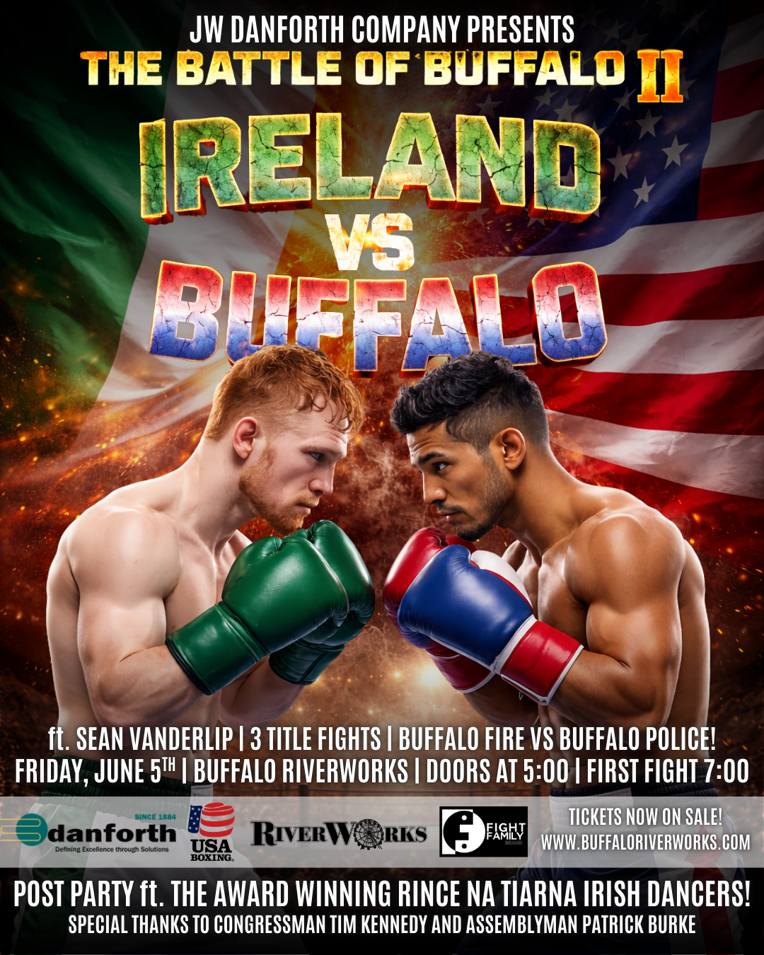 An international boxing showdown returns to the Queen City as Battle of Buffalo II: Ireland vs. Buffalo takes place on Friday, June 5 at Buffalo RiverWorks.