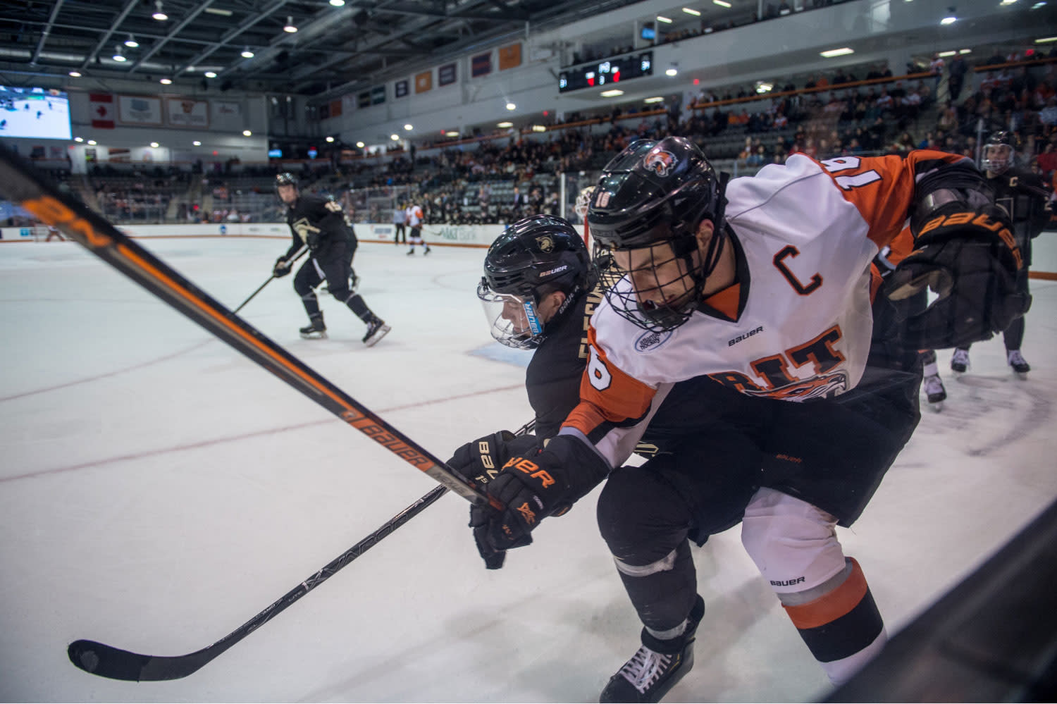 Home to the RIT Tigers Men’s & Women’s Division 1 Hockey Programs, the 112,400 square foot Ice Arena / multi-purpose facility includes 4,000 seats and additional standing room space for a total of 4,300 fans. Featuring the Club Lounge; an upscale, full-service hospitality area featuring a full buffet and cash bar at each game with exclusive padded seating located behind RIT’s team bench. The arena also is equipped with six luxury suites and a VIP player experience box. The venue also serves as a host to a number of non-ice special events throughout each year.
