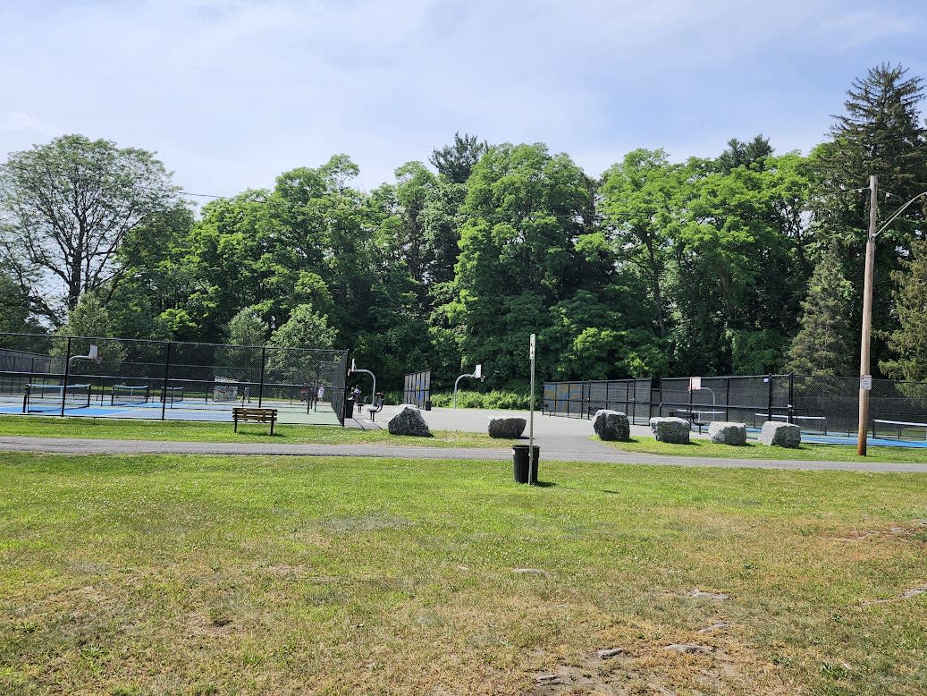 Hillhurst park features tennis and basketball courts, a playground, and picnic areas for active fun and relaxing outdoors.