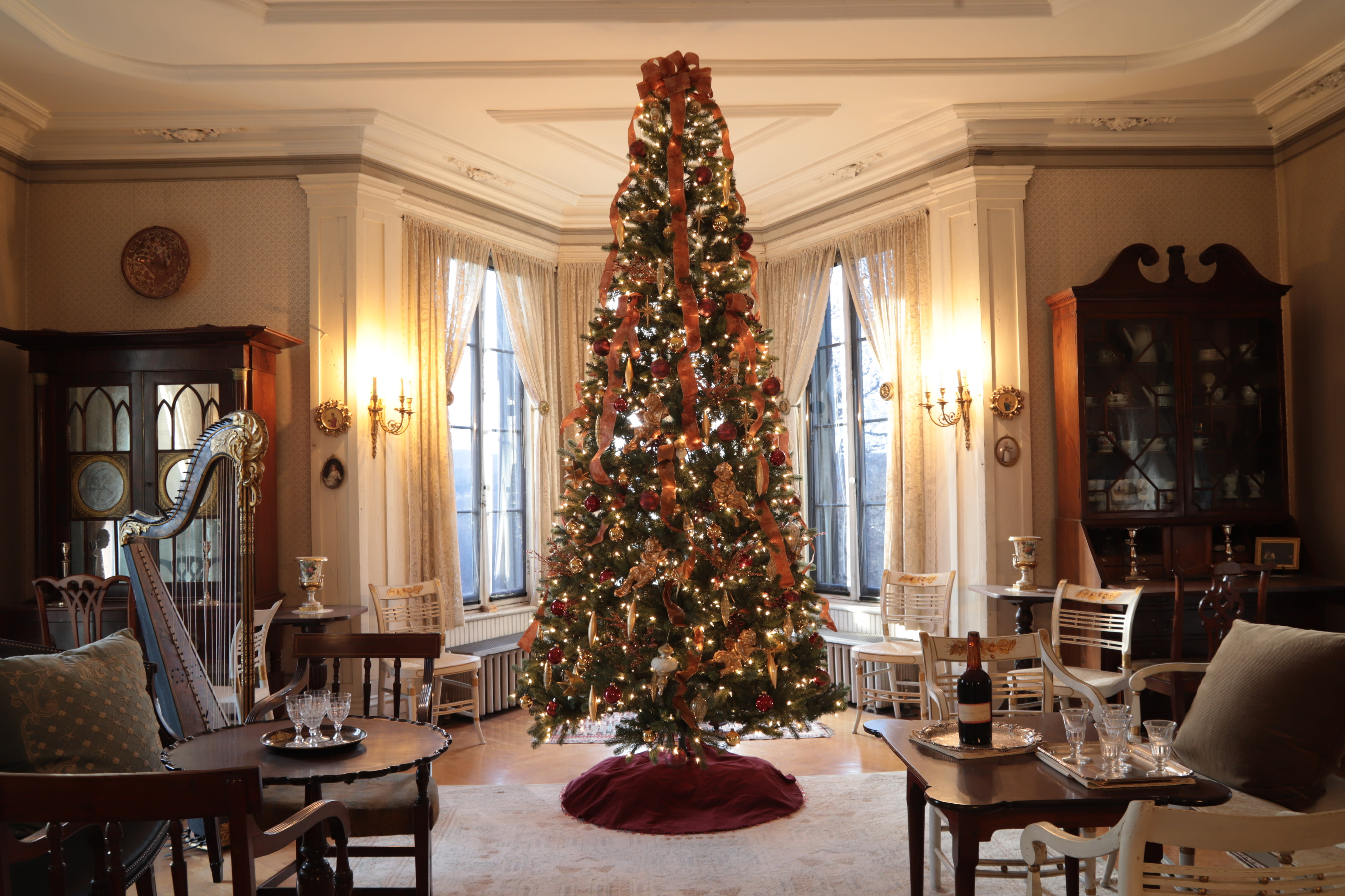 This historic country estate includes a 25-room Italianate villa featuring an outstanding original collection of furnishings and paintings, a Carriage House with original carriages, 180 acres that has historic gardens and landscaped grounds with Hudson River views, 5 miles of carriage roads/hiking trails, and a visitor center with exhibit galleries.