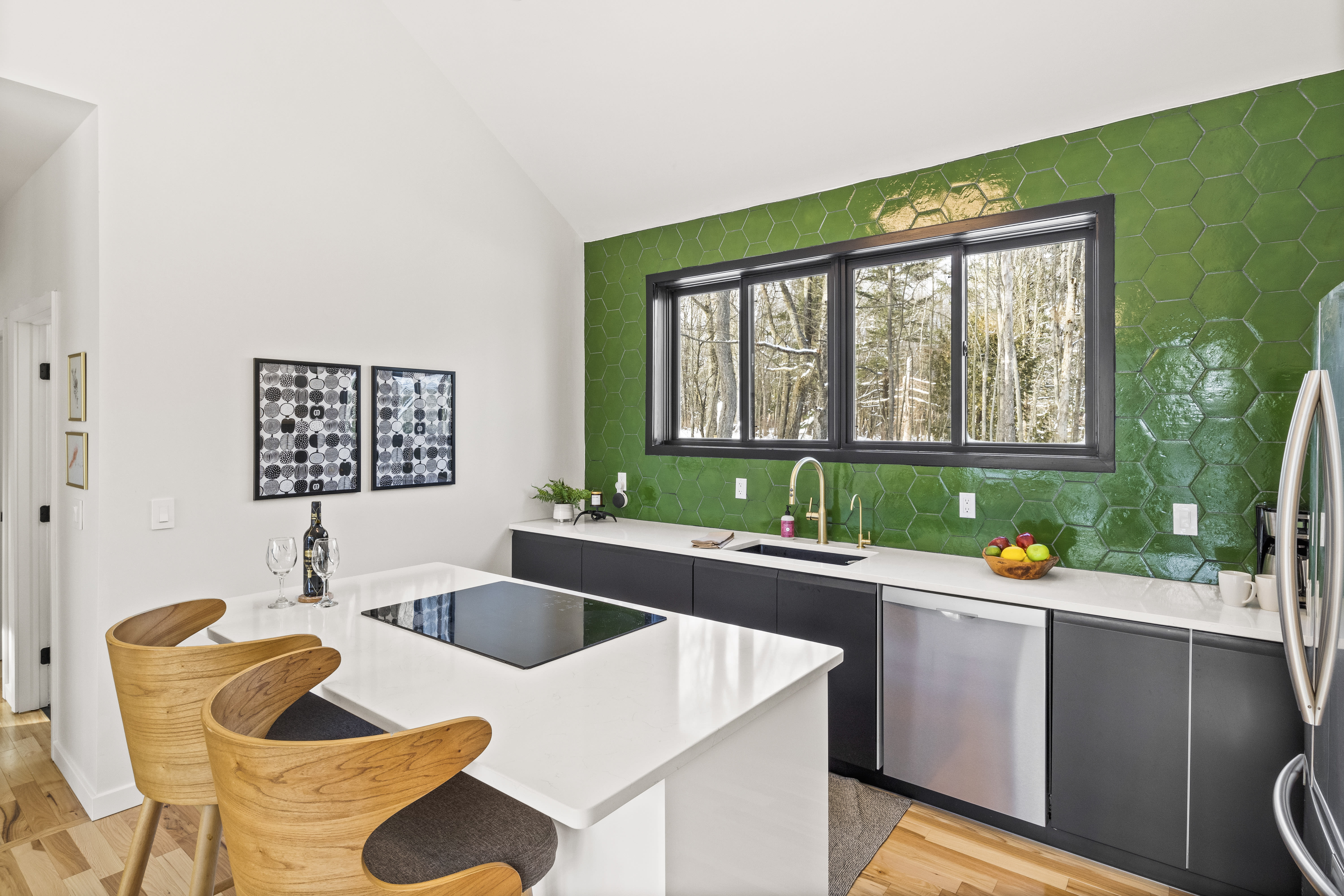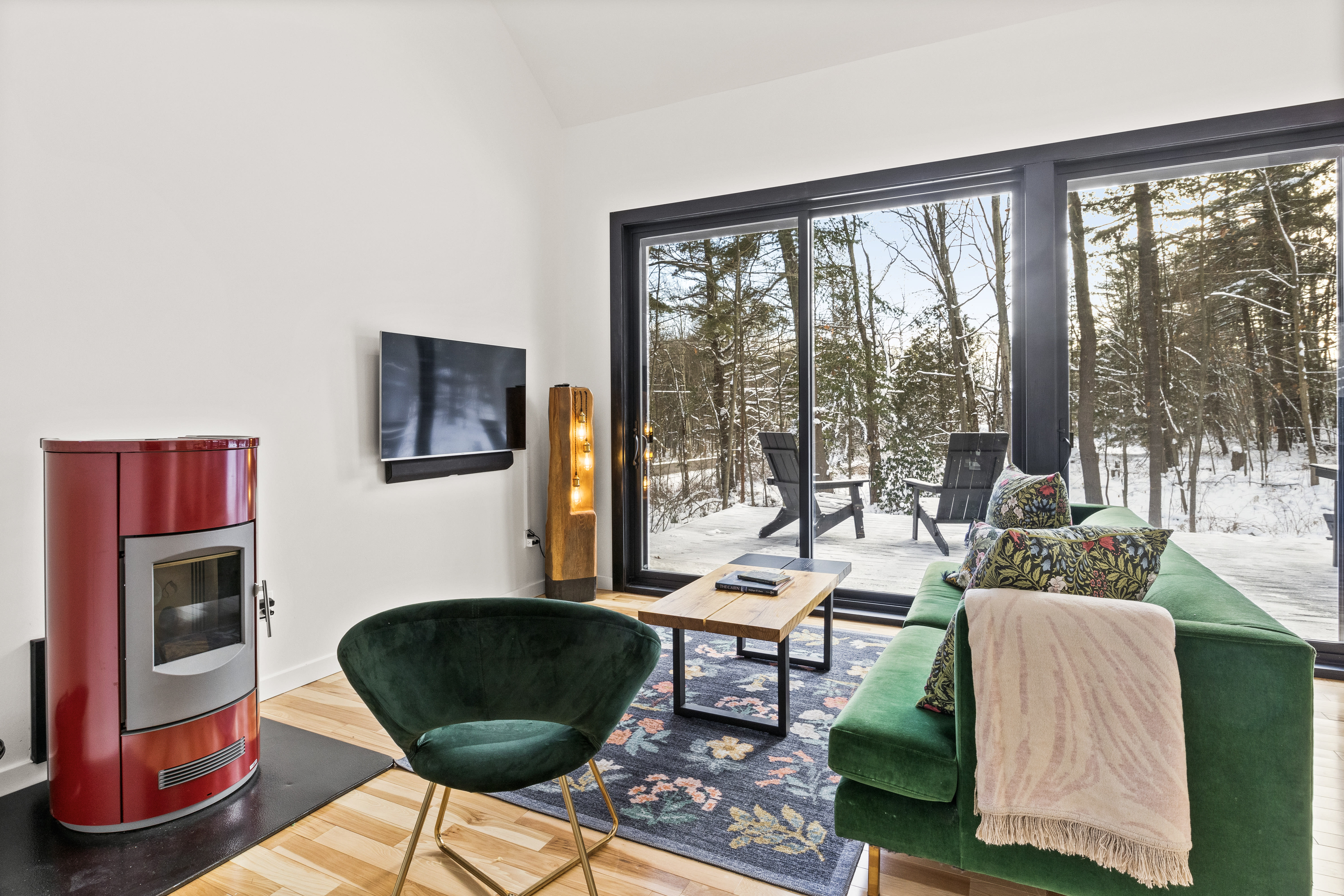 Discover the perfect blend of Scandinavian simplicity and modern technology at Story Road, a serene 2-bedroom, 2-bath retreat nestled in the woods. Designed with energy efficiency in mind, this handcrafted home features stunning custom furniture, large windows that connect you to nature, and high-end appliances for a seamless stay. Relax by the cozy pellet stove, soak in the hot tub under a star-filled sky, or explore nearby trails and local attractions.